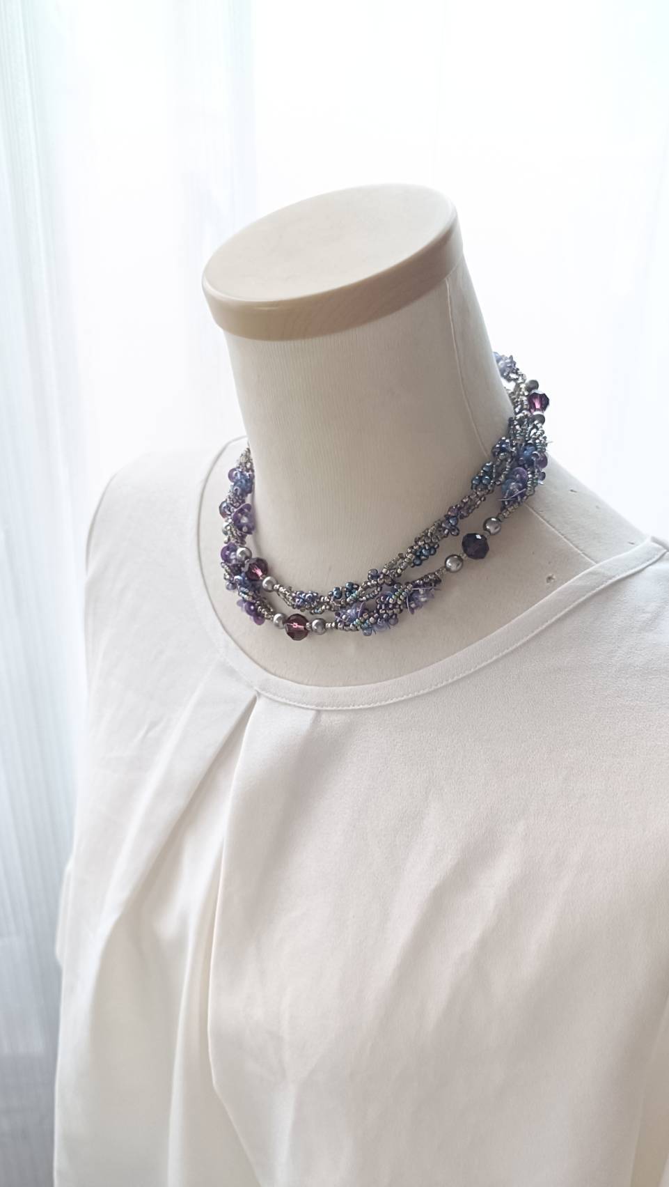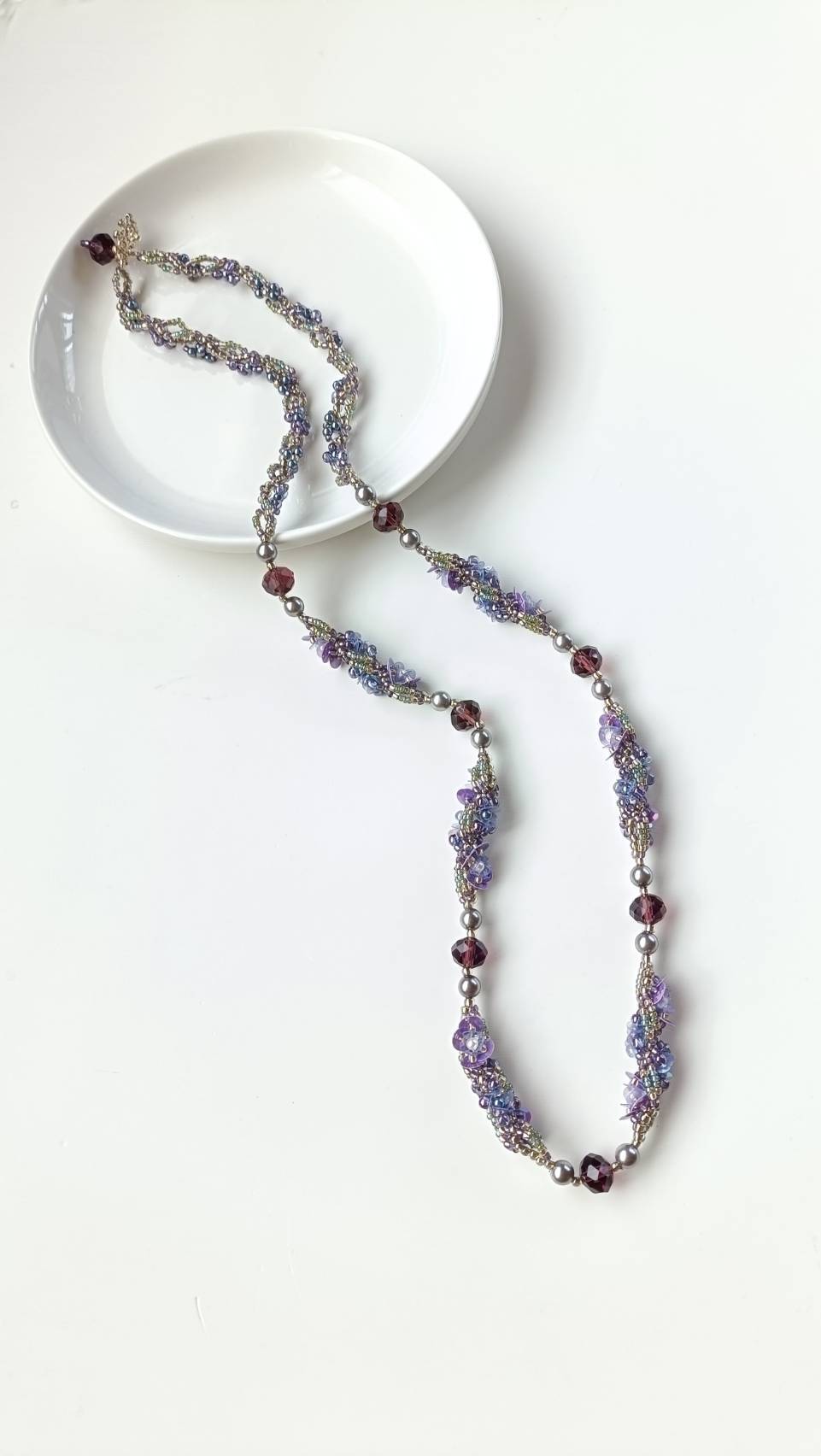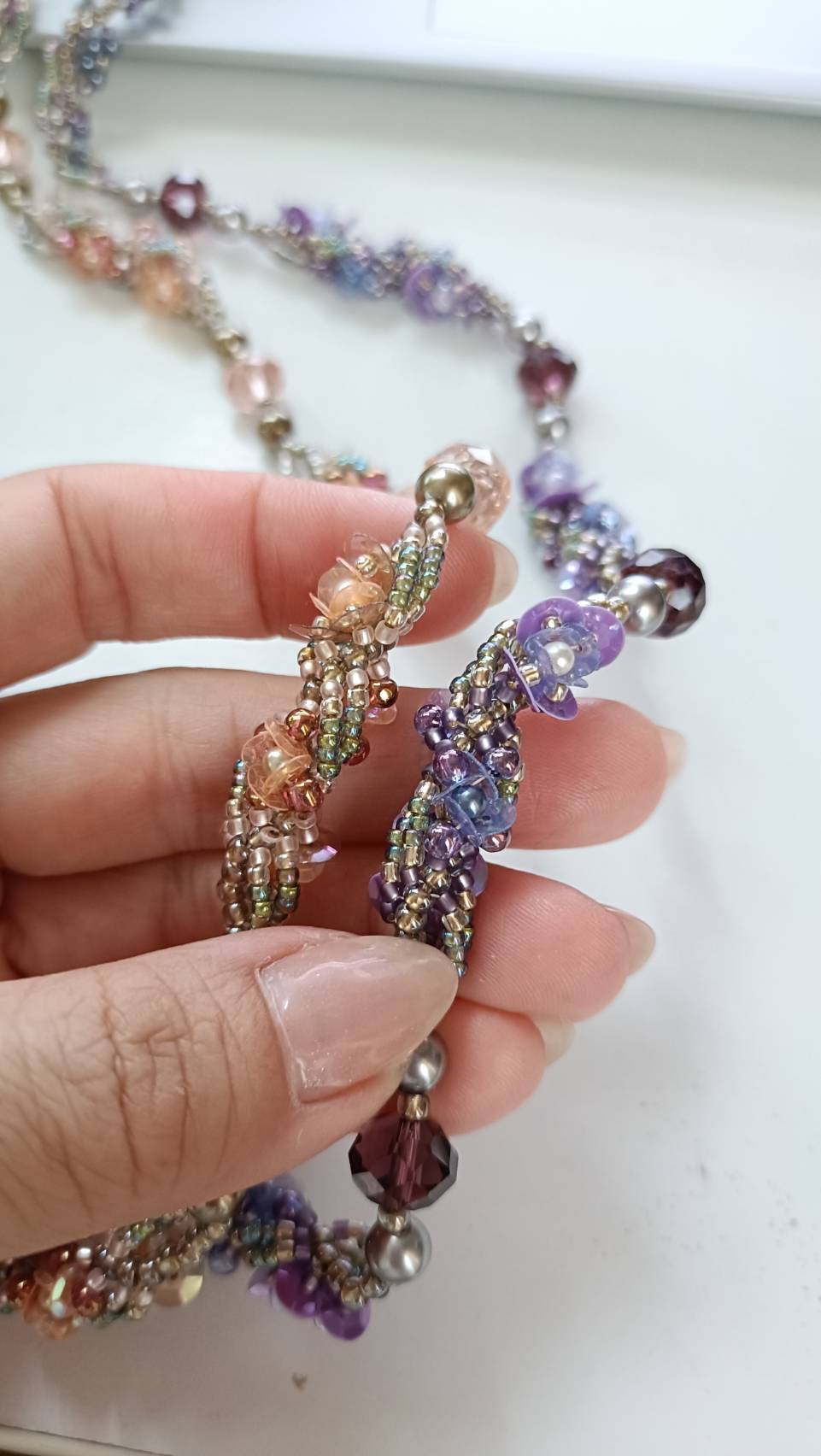 小花のモチーフに仕立てたビーズステッチネックレス。
