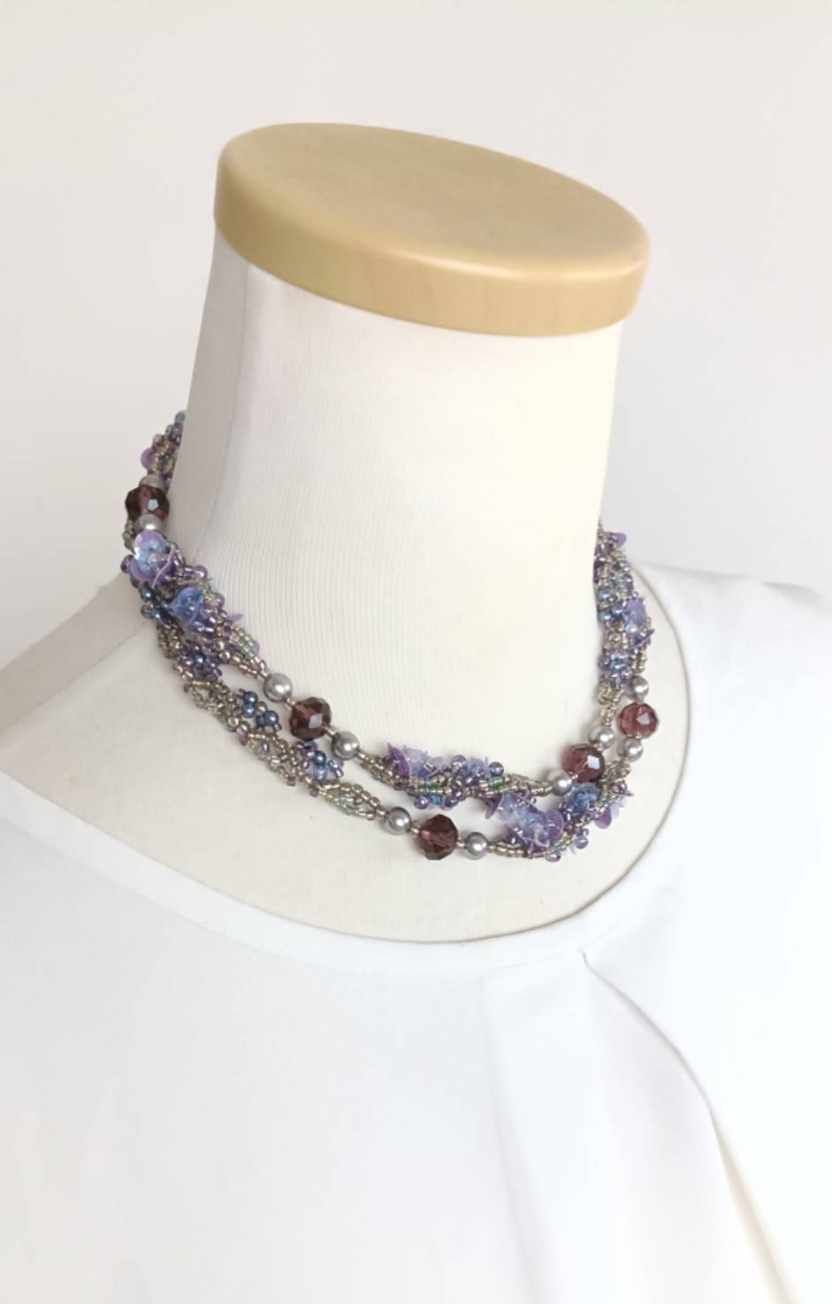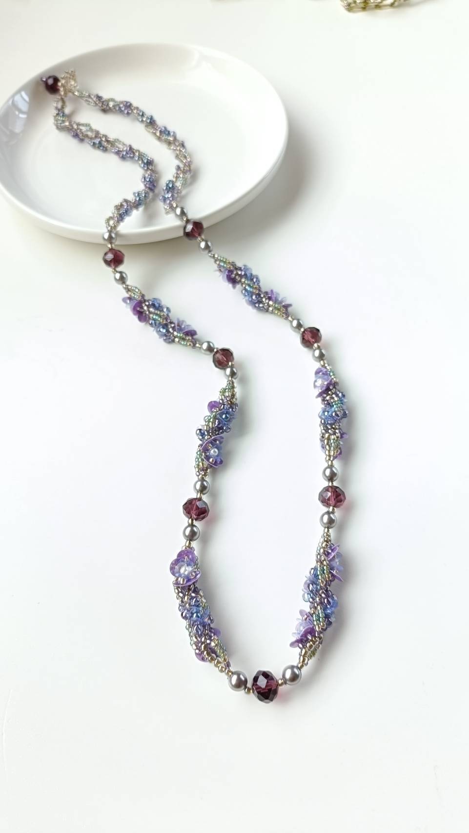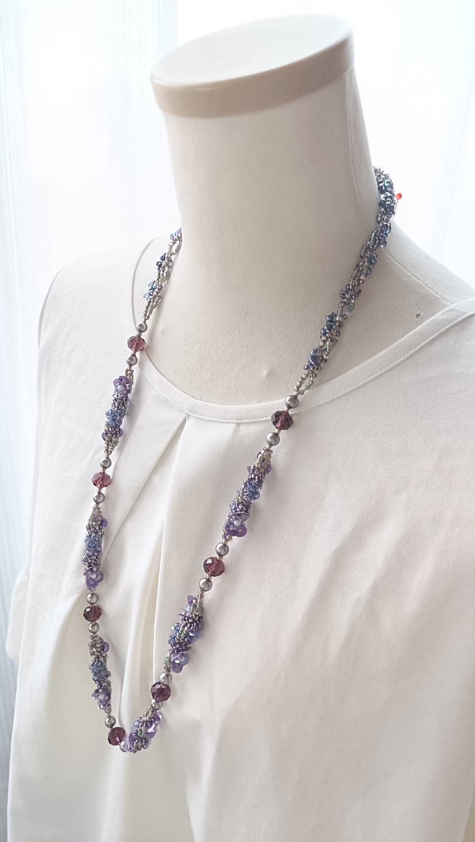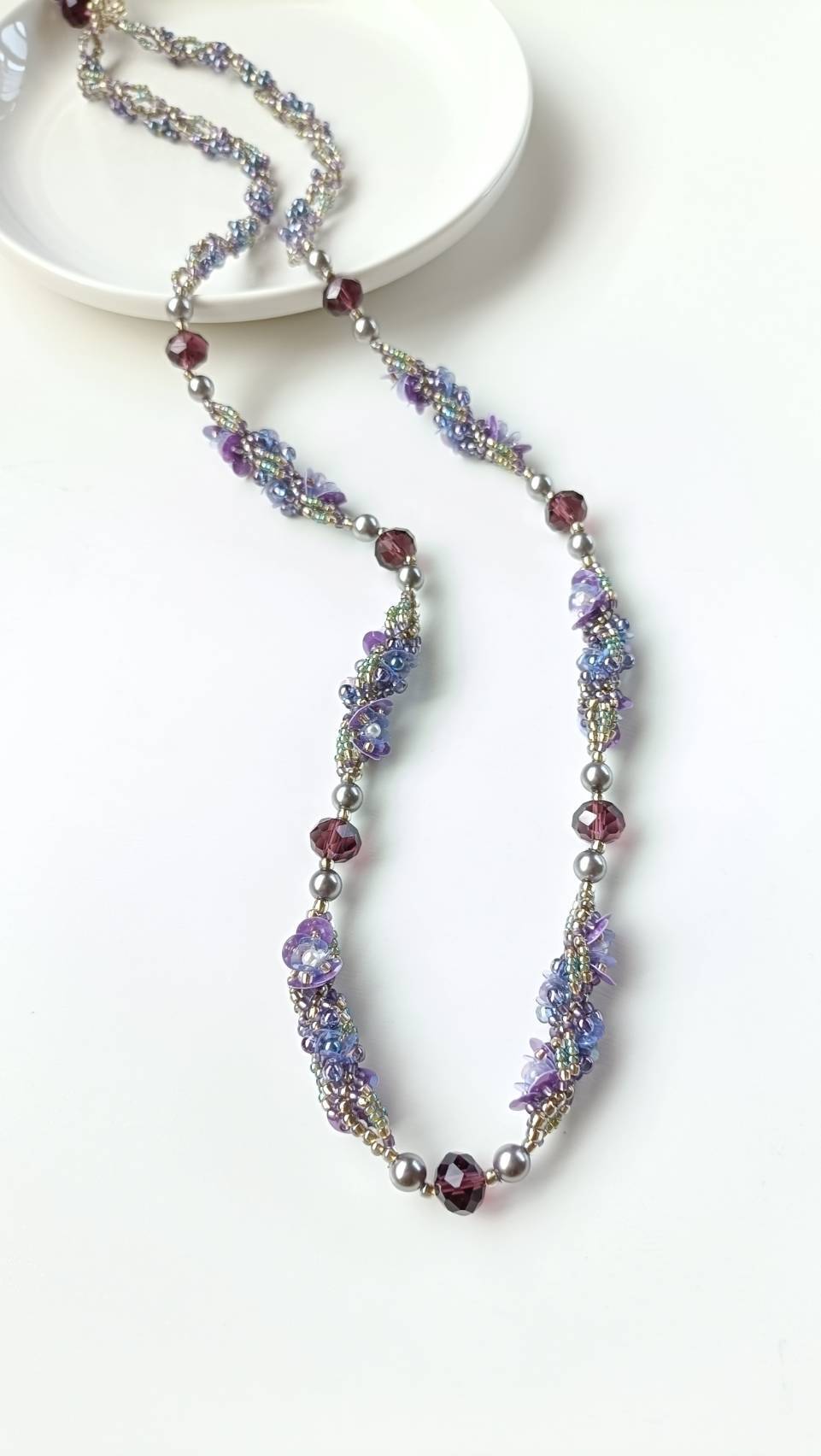 小花のモチーフに仕立てたビーズステッチネックレス。