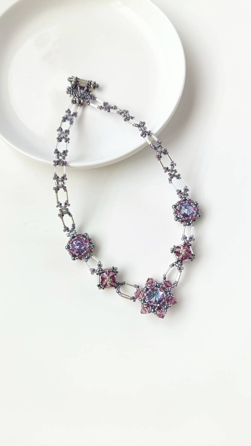 💎 クリスタルガラスがきらめく、立体モチーフのネックレス 💎